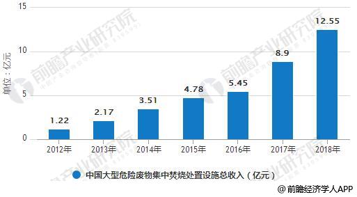 中國大型危險廢物集中焚燒處置設(shè)施總收入剖析展望 與此同時,隨著中國大型危險廢物集中焚燒處置設(shè)施的處置能力增強(qiáng),促使中國大型危險廢物集中焚燒處置設(shè)施的總收入業(yè)不停增添。中國大型危險廢物集中焚燒處置設(shè)施總收入從2012年的1.22億元增至2016年的5.45億元,年均復(fù)合增進(jìn)率為45.33%,預(yù)計2018年中國大型危險廢物集中焚燒處置設(shè)施總收入將超12億元。 2012-2018年中國大型危險廢物集中焚燒處置設(shè)施總收入統(tǒng)計情形及展望