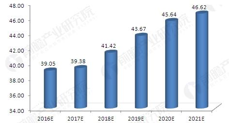 資料來(lái)源:《前瞻產(chǎn)業(yè)研究院工業(yè)固廢處理行業(yè)報(bào)告》 對(duì)此,必須加快提升工業(yè)固廢處理能力。2015年,我國(guó)工業(yè)固體廢棄物綜合利用率大概在50%左右。與2010年40%的工業(yè)固廢綜合利用率相比,期間綜合利用率年均提升兩個(gè)百分點(diǎn)。那么,到2021年,我國(guó)工業(yè)固體廢棄物綜合利用率將達(dá)到61%左右,綜合利用量將接近34億噸。 2016-2021年中國(guó)工業(yè)固體廢物綜合利用量預(yù)測(cè)(單位:億噸)