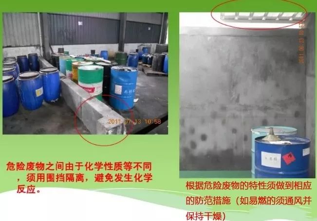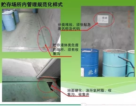 <三>環(huán)保局:危廢暫存間應(yīng)這樣建!對(duì)錯(cuò)對(duì)比照片: