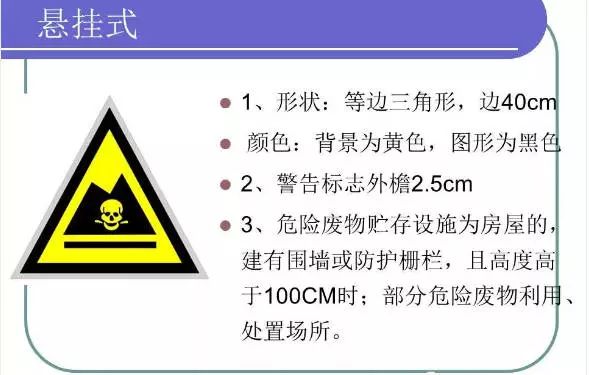 ▲適合于室內(nèi)外懸掛的危險(xiǎn)廢物忠告標(biāo)志