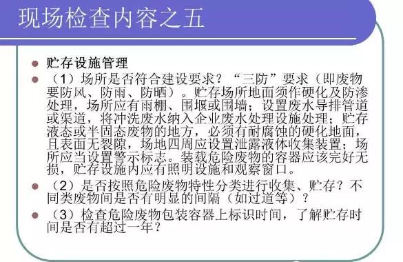 貯存場(chǎng)所不得毗鄰市政雨水管或污水管,危險(xiǎn)廢物貯存設(shè)施內(nèi)清算出來(lái)的泄露物,一律按危險(xiǎn)廢物處置,沖洗廢水必須納入企業(yè)廢水處置設(shè)施經(jīng)處置達(dá)標(biāo)后方可排放。